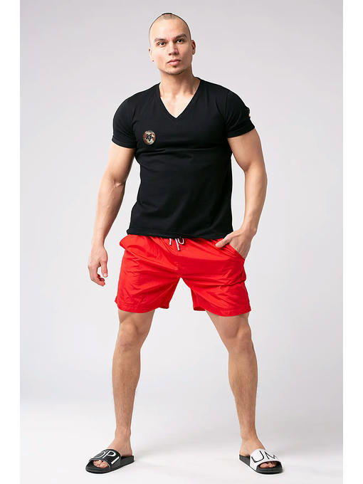Мужская футболка в милитари стиле Шеврон на груди с камуфляжной символикой, принт на рукаве в виде военного знака различия. Модный силуэт, V-образный вырез горловины, рукава подвернуты наружу. Брутальность в образе не помешает ни одному мужчине