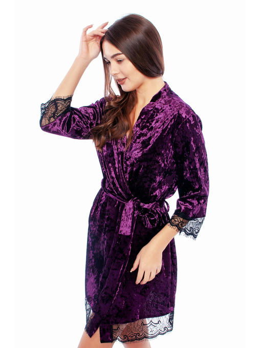 Халат женский велюровый, цвет черничный, под пояс, рукав /, длина выше колен; красивая комфортная незаменима в домашнем гардеробе; можно комплектом с пижамой.