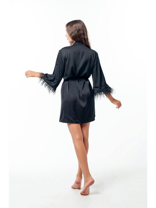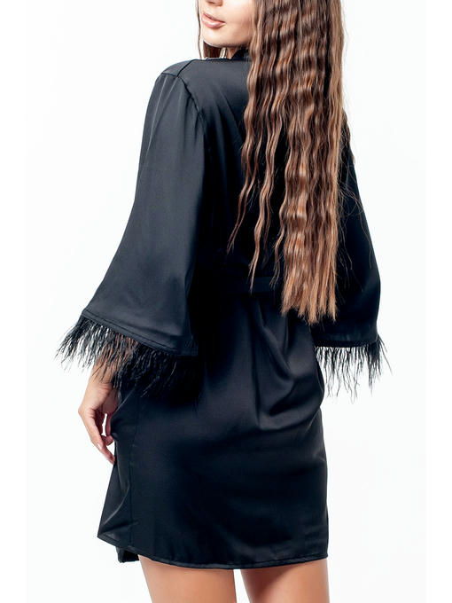 Женский халат (пеньюар) ткань шелк Армани с отделкой страусинными перьями, цвет черный