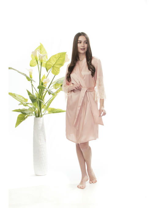 Халат женский из шелка Армани, цвет пудровый. Под пояс, рукав /. Можно в комплекте с пеньюаром.