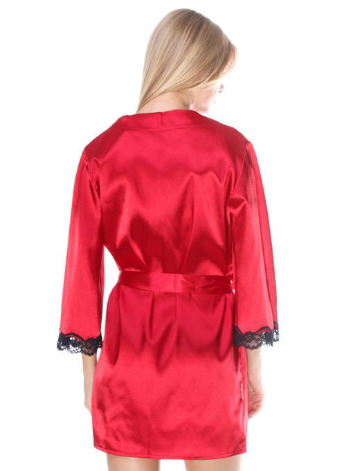 Халат женский из стрейч атласа с кружевом, темно красный