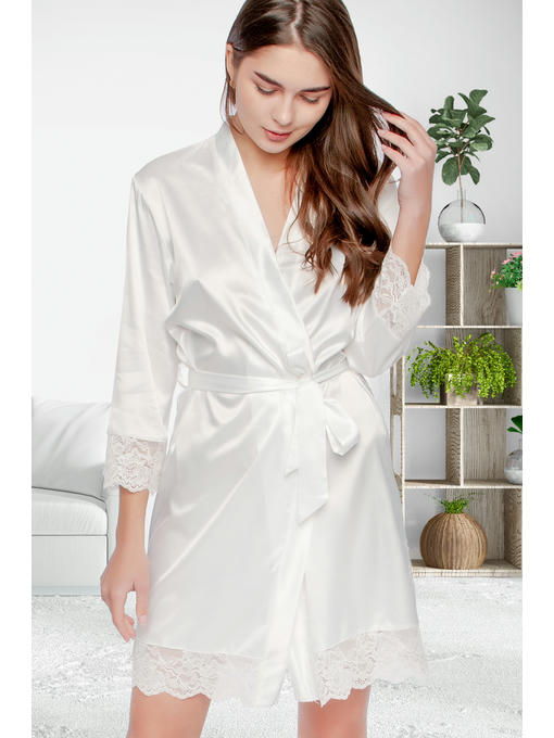 Халат женский из качественного сатин-шелка с нежным кружевом, легкий и элегантный, шампань
