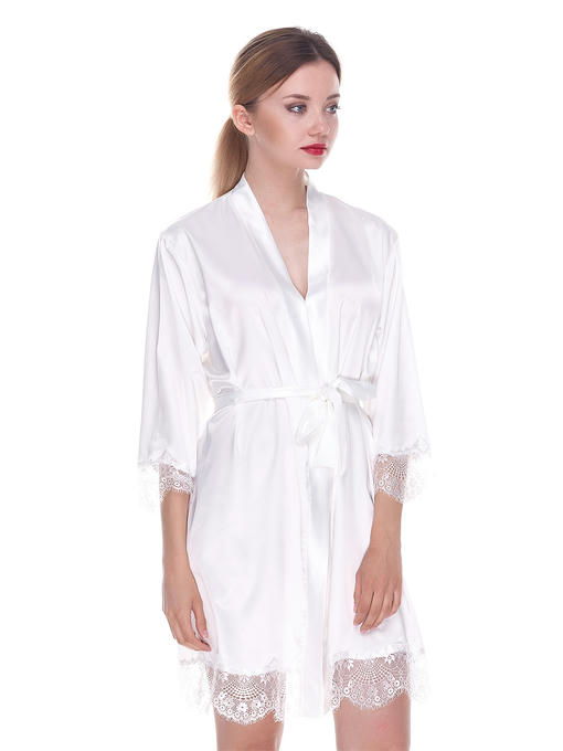 Халат из качественного сатин-шелка с нежным кружевом, легкий и элегантный, ваниль
