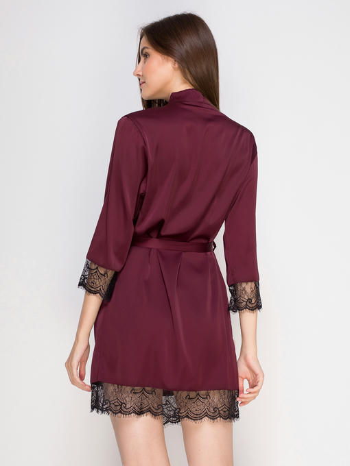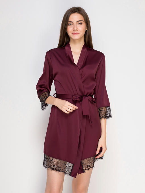 Халат из качественного шелка Армани с нежным кружевом, легкий и элегантный, черничный с черным