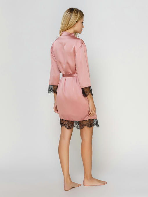 Халат из качественного шелка Армани с нежным кружевом, легкий и элегантный, фрез с черным