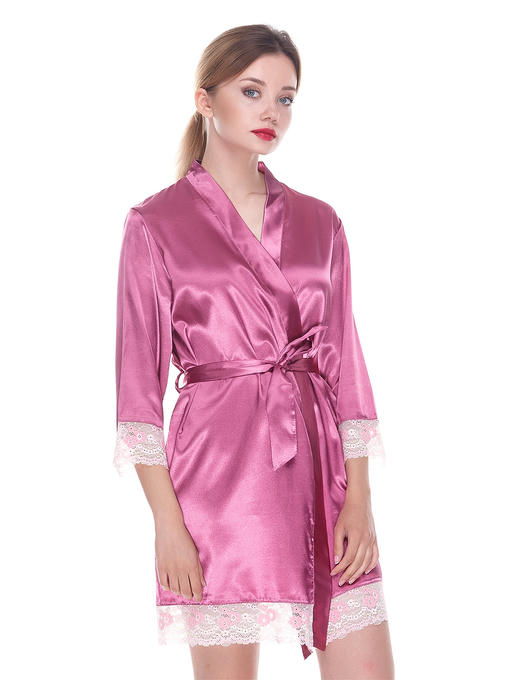 Халат женский из стрейч атласа с кружевом, фуксия с шампанью
