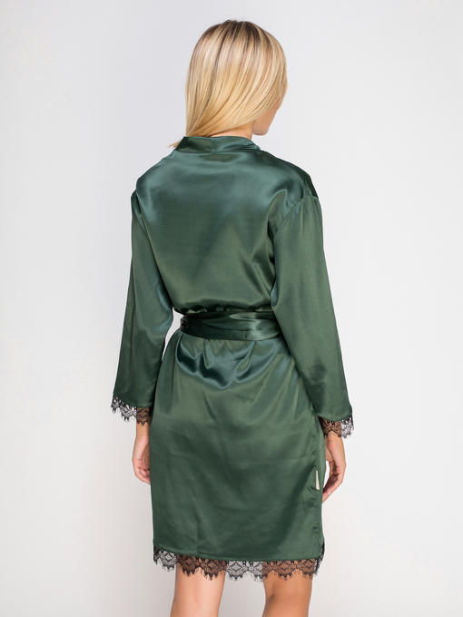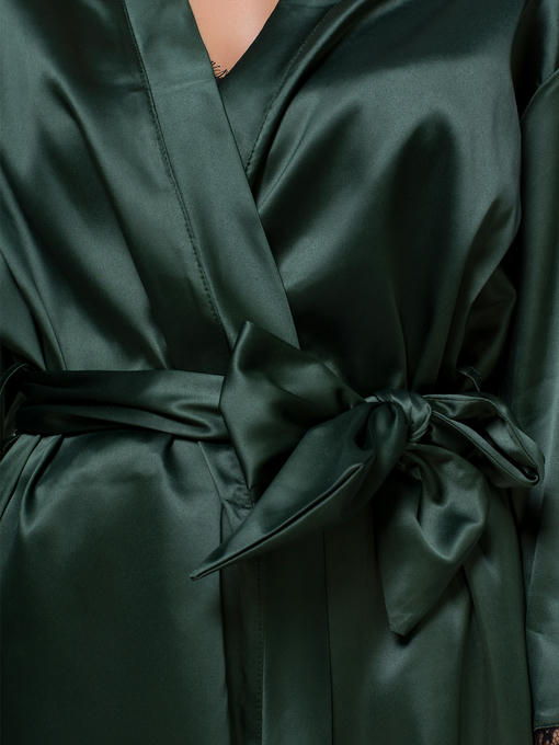 Халат женский из качественного сатин шелка с нежным кружевом, легкий и элегантный, зеленый с черным