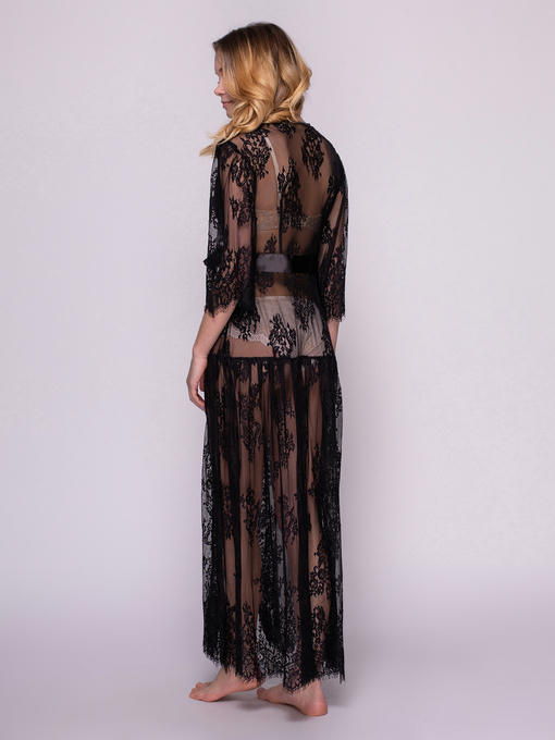 Женский халат из качественного французского кружевного полотна, легкий и элегантный, черный