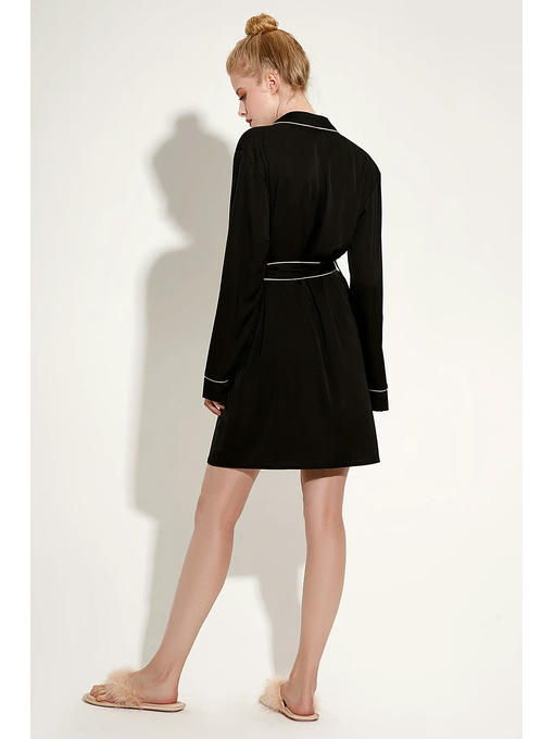 Халат женский до колена, рукав длинный В комплекте идет пояс Край борта, воротник, низ рукава и пояс декорированы кантом контрастного цвета Удобный стильный халат для повседневной носки