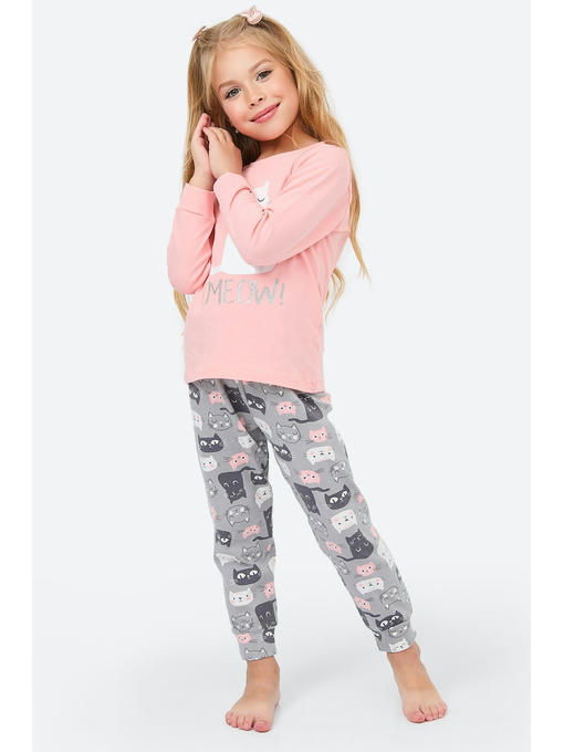 В комплекте розовая кофта с длинным рукавом и брюки. Рукава и штанишки не задираются благодаря манжетам, а детская пижама удобна во время сна. Эластичная резинка в поясе комфортно прилегает к телу, не сдавливая нежную кожу. Штаны и джемпер из трикотажа не сковывают движений озорного ребенка благодаря свободному крою.