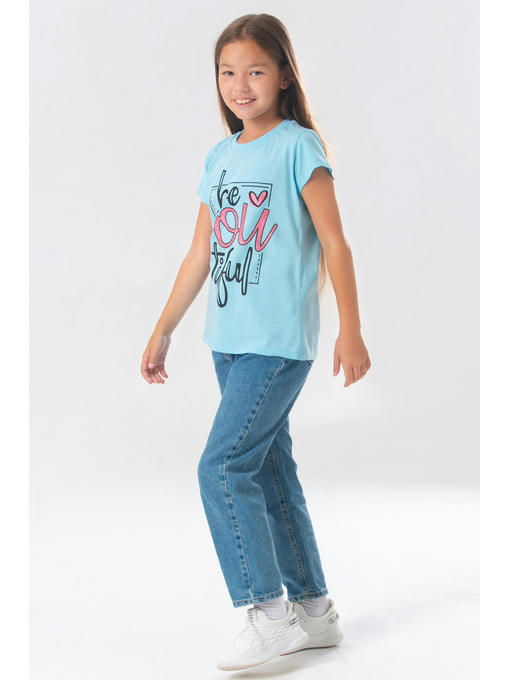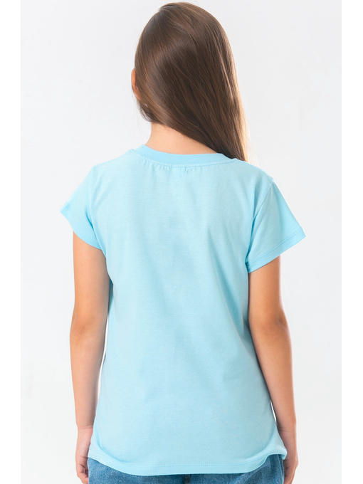 Детская футболка для девочек и подростков выполнена из натурального 100% хлопка, ткань кулирная гладь. Хлопковая футболка из качественного трикотажа выдерживает многочисленные стирки без потери чистоты цвета и четкости рисунка. Светло-голубая футболка украшена принтом надпись.