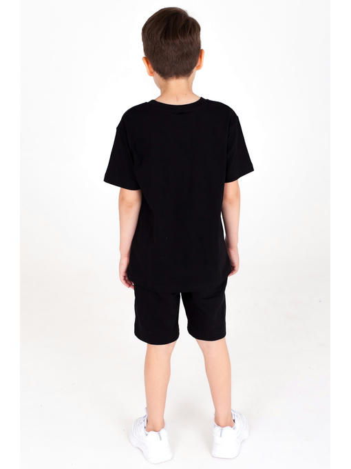 Футболка для мальчиков сшита из 100% натуральной хлопковой ткани кулирная гладь. Детская футболка классического кроя украшена надписью и выполнена в черном цвете.