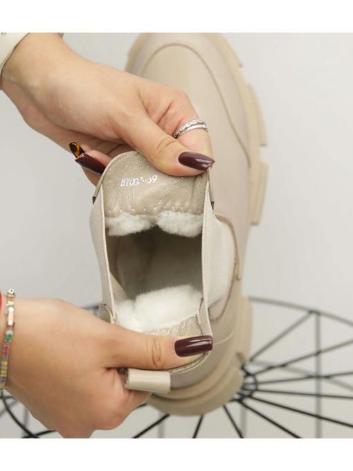 Челси женские в универсальном бежевом цвете, выполнены из натуральной кожи. Актуальная, стильная, удобная и легкая пара, вес полупарка – 450 гр. Внутреннее наполнение – мех, стелька меховая, комфортно чувствуется при ношении. Подошва – EVA, износостойкая, высота подошвы – 4,5 см; Челси 583745 идеально подойдут на каждый день и под каждый образ.