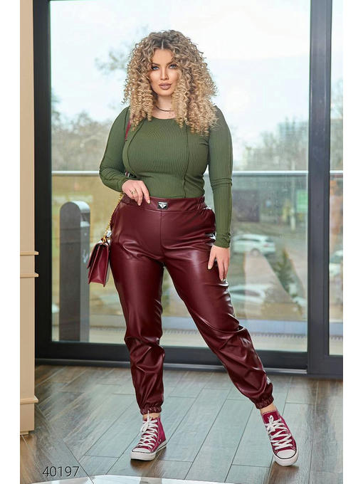 Штаны джоггеры женские. Ткань: экокожа на трикотажной основе (очень хорошо тянется). Пояс на резинке + низ штанов на резинке. Высокая посадка.
