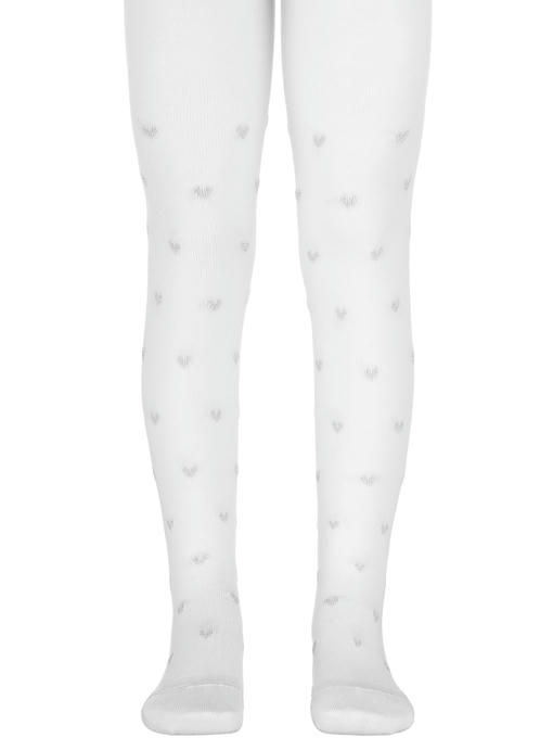 Хлопковые колготки с люрексом для девочек, блестящие сердечки сделают образ очень нарядным. Выполнены из пряжи с высоким содержанием хлопка. Натуральный хлопок позволяет коже дышать, добавление эластана защищает от деформации и увеличивает срок службы детских колготок.