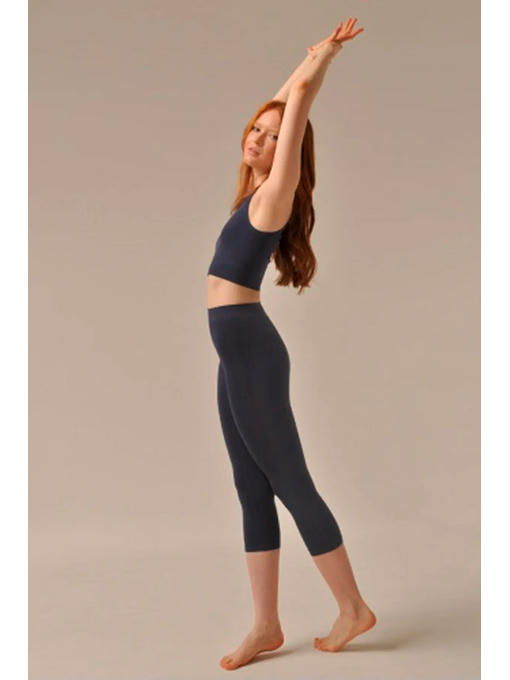 Леггинсы женские укороченные. Эта модель из новой бесшовной капсулы выполнена из мягкой эластичной микрофибры. Облегающий крой не сковывает движения. Выполнены по современной бесшовной технологии без среднего и боковых швов, единственный плоский шов расположен на внутренней поверхности ног. Штанины обработаны в подгибку плоским швом.