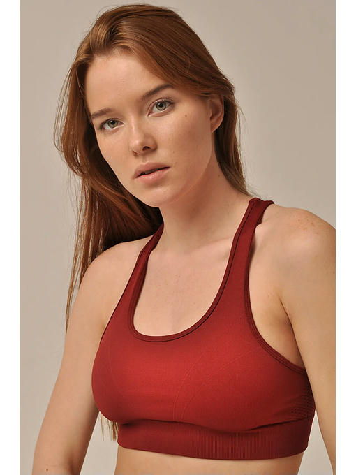 Женский спортивный топ на широких бретелях. Модель выполнена из мягкой эластичной микрофибры, с фактурными вставками, без чашки. Анатомическая вязка повторяет форму груди, плотная резинка по низу и широкие бретели обеспечивают комфортную поддержку.