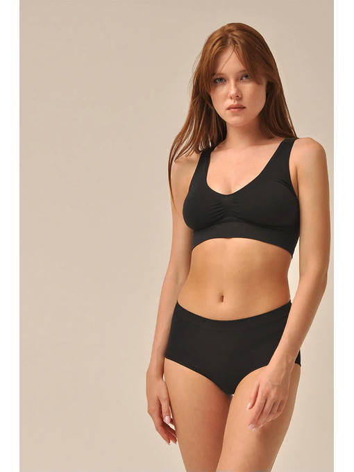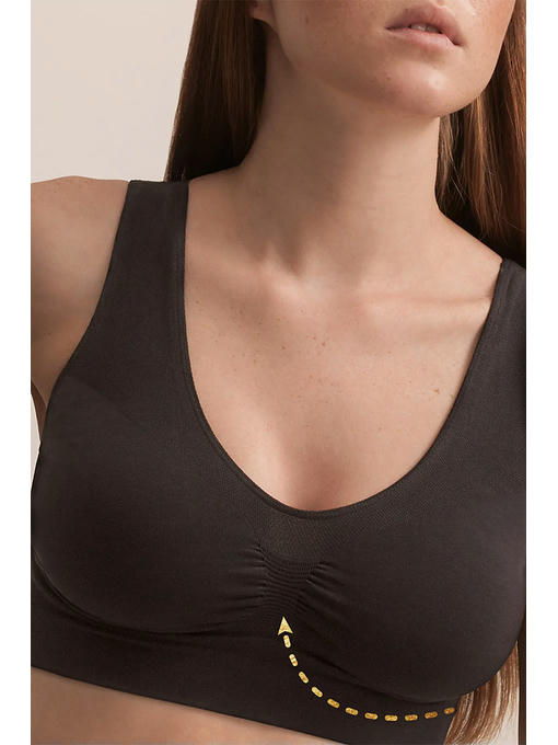 Вставки разной плотности, цельновязанная резинка по низу и широкие бретели обеспечивают комфортную поддержку груди и удобство в течение всего дня.
